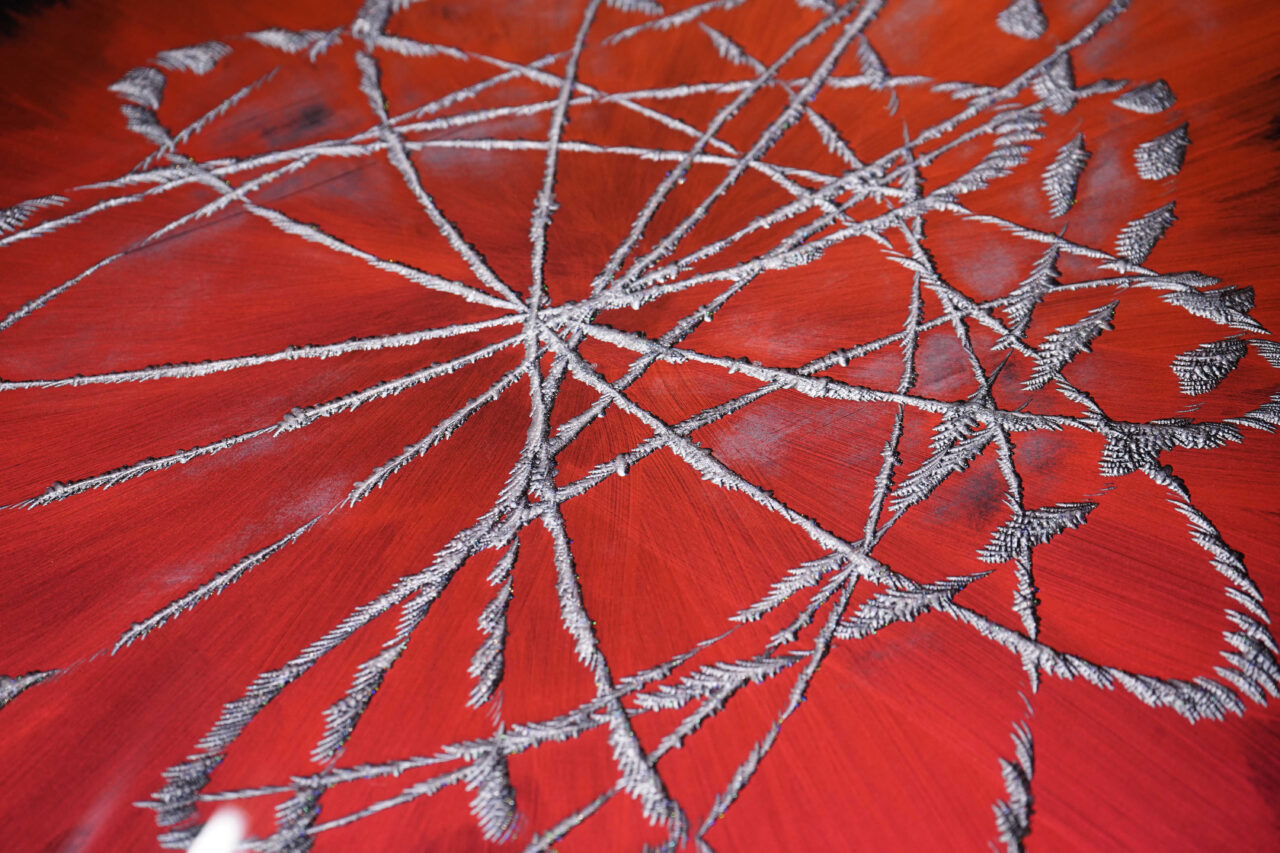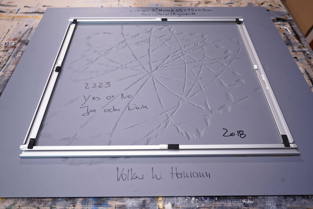 In the work “Yes or No (2223)” from 2018, I worked with strong lava red and deep black to express intense emotions and inner energy. The white lines cut into the material with a chainsaw act like impulses running through the chaos, symbolizing tension and movement. This piece brings a powerful dynamic [...]